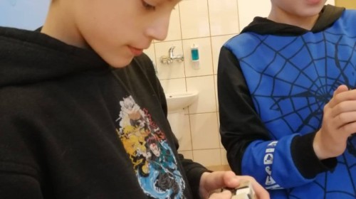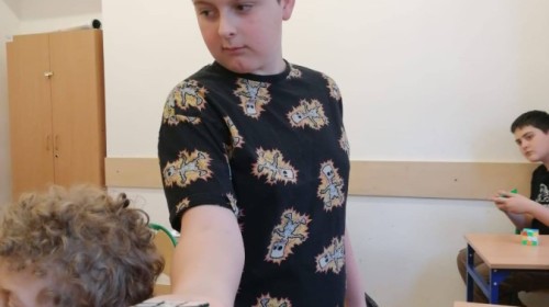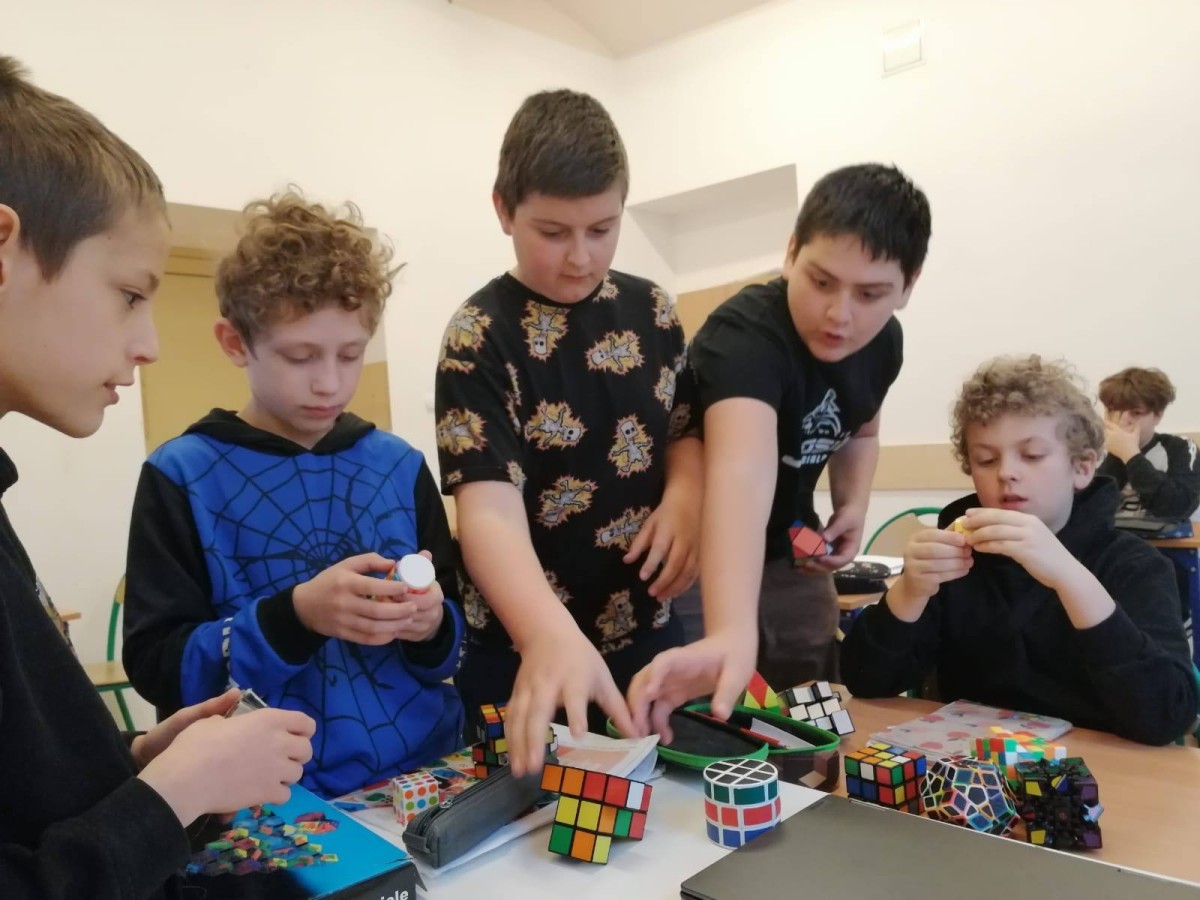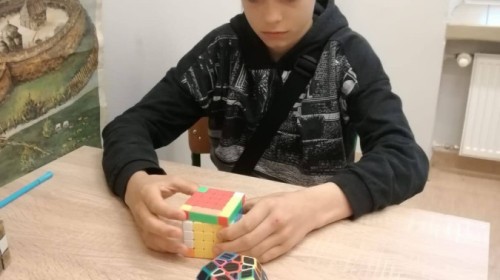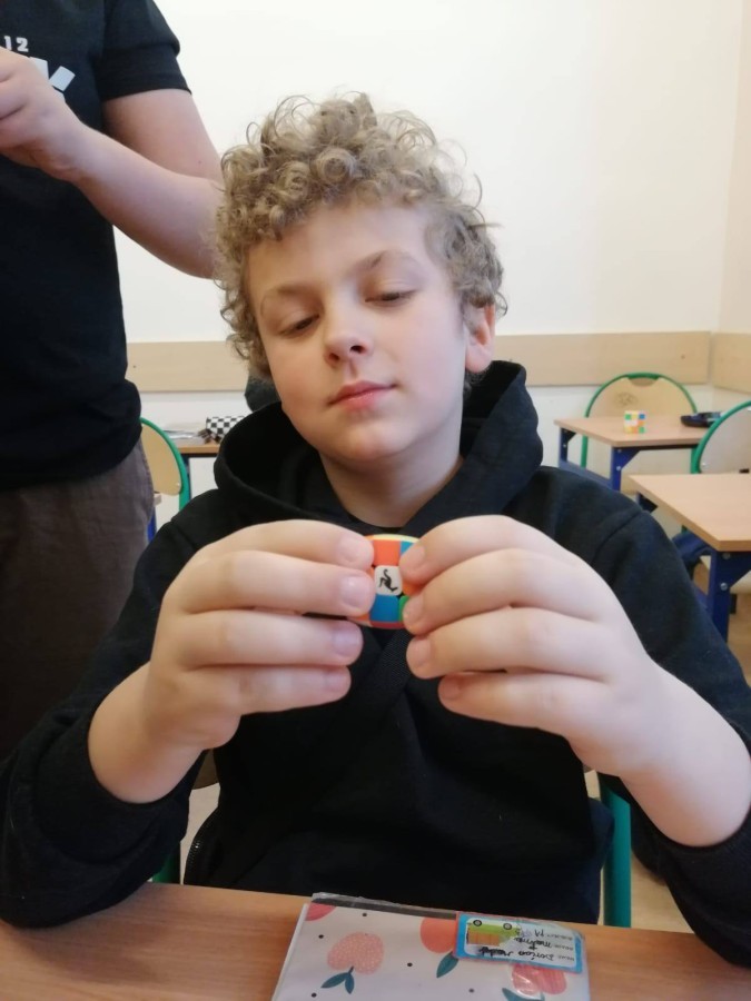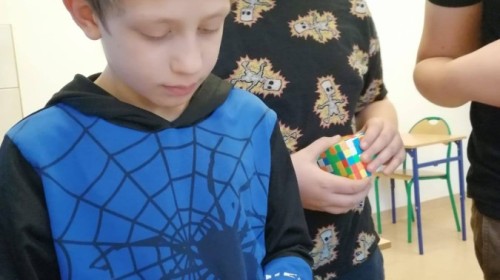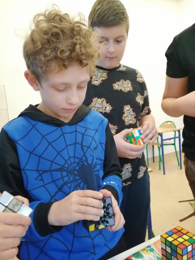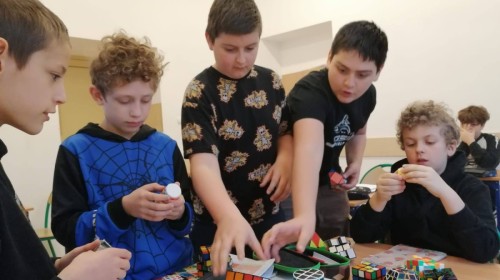 Uczniowie ćwiczyli układanie oraz dzielili się różnymi technikami i trikami. Nie zabrakło też pokazów – niektórzy potrafili ułożyć kostkę