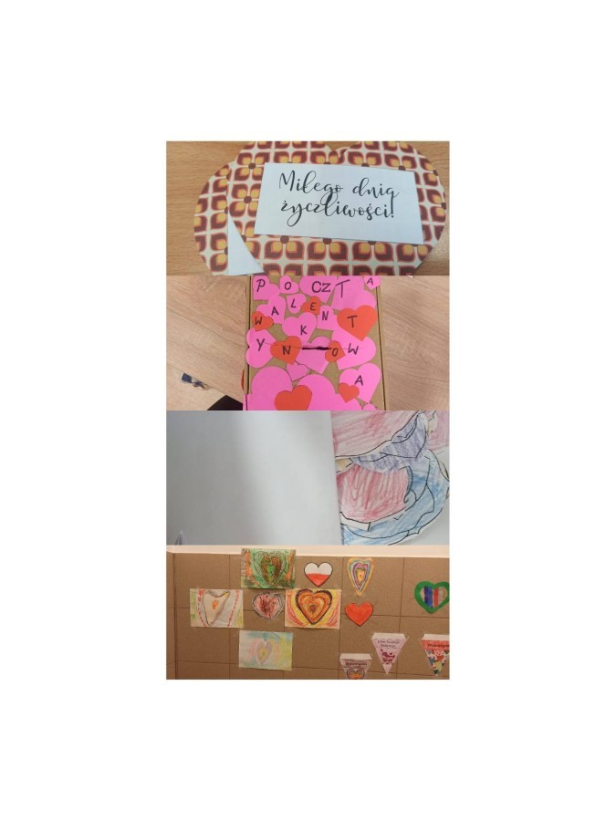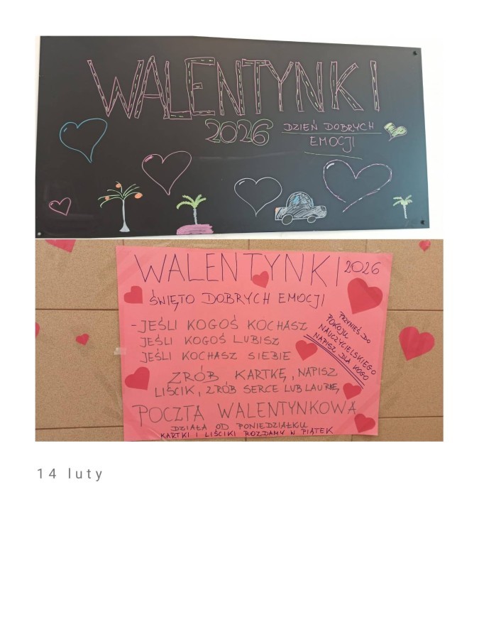 Uczniowie mieli możliwość napisania walentynkowych kartek do swoich koleżanek, kolegów, przyjaciół, a także nauczycieli. W przygotowanej wcześniej „poczcie walentynkowej” każdy mógł wrzucić swoją kartkę